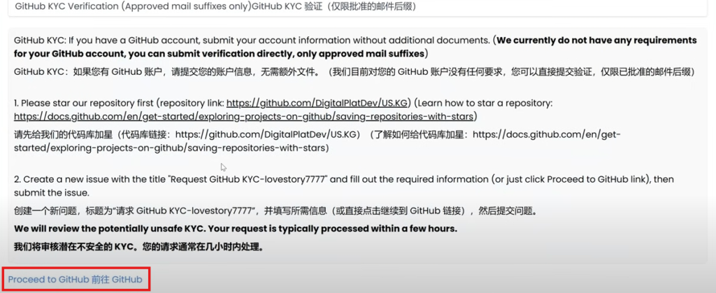 选择Github KYC验证,然后进入Github项目: